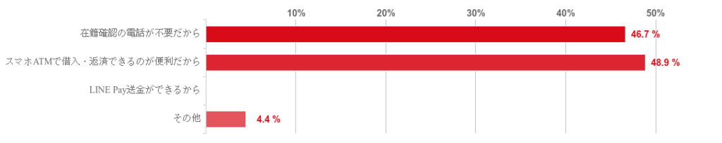 また、「在籍確認の電話が不要だから」という意見が46.7%となり、まずはこの2点がSMBCモビットのカードローンを選ぶ魅力だといえるだろう。