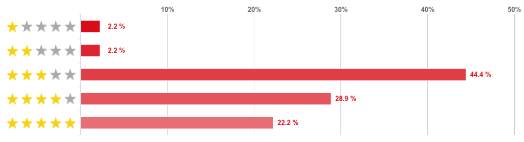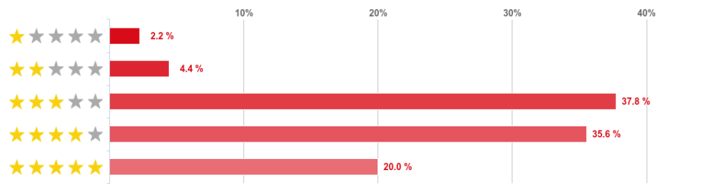 アンケートによれば、SMBCモビットのカードローンの金利について低く評価した人は限定的だったものの、3点と評価した人が最も多く55.6%となった。
