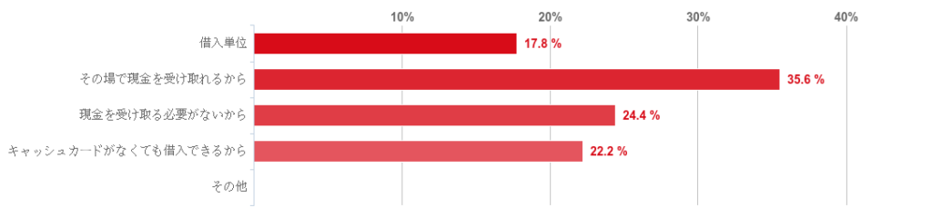 なお、上記の借入方法を選んだ理由について尋ねたところ、「その場で現金を受け取れるから」と答えた人が最も多く35.6%だった。