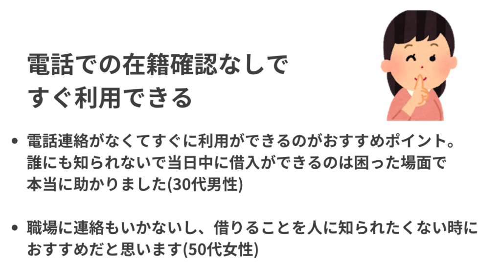 「電話での在籍確認なしですぐ利用できる」ところがおすすめ