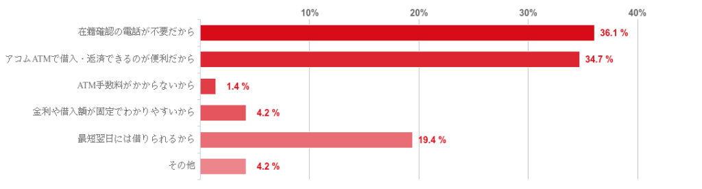 アンケートによると、回答者の約4割が「在籍確認の電話が不要」を理由にアコムのカードローンを借入先として選んでいることがわかった。