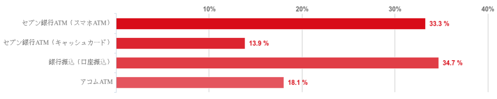また、半数近くの人がセブン銀行ATM(スマホATM)から借入を進めており、その他には、銀行振込(口座振込)やアコムATMとの回答が一定数集まった。