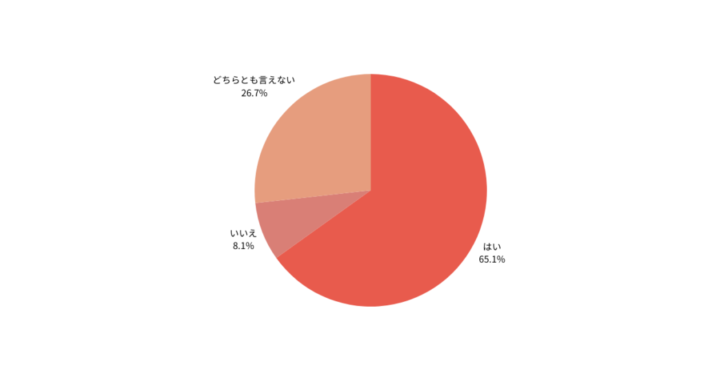 イオン銀行カードローンを周囲におすすめしたいと回答した人は65.1%となった。その他、「いいえ」が8.1%、「どちらとも言えない」は26.7%という結果となった。