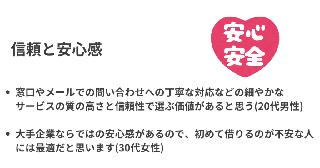 アンケートによれば、サポート体制についても借入や返済手続きの利便性と同じく概ね高い評価が集まった。