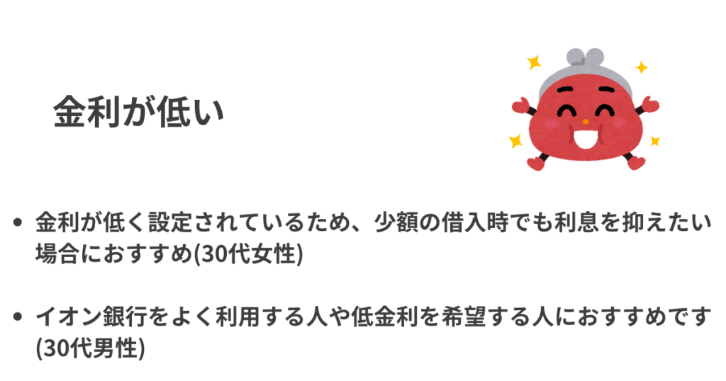 他社と比べて、イオン銀行カードローンはどのような場合におすすめだと思いますか?
