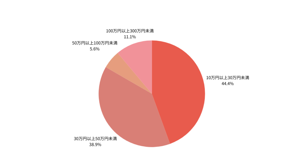 アンケートによると、低額~中額借入(10万円~30万円や30万円~50万円)をしている人が全体の8割以上を占め、それ以上の高額借入は少ない結果となった。