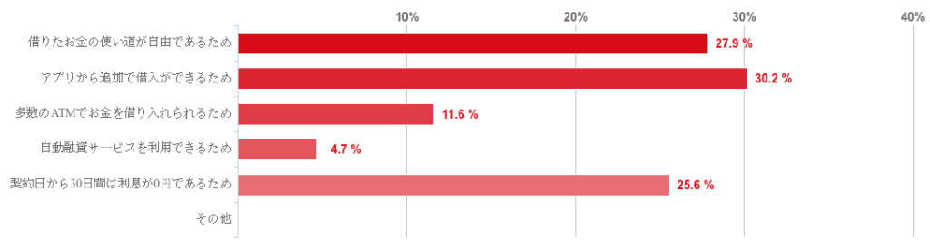 アンケートによると、回答者の約3割が「アプリから追加で借入ができる」ことを理由に「スターカードローンα」を借入先として選んでいることがわかった。