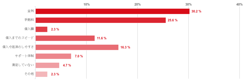アンケートによれば、最も評価している点には金利が挙げられ、3割を超える結果となった。