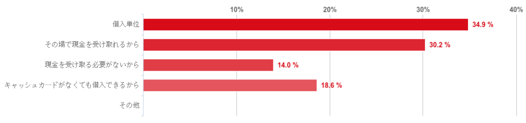 なお、上記の借入方法を選んだ理由について尋ねたところ、「借入単位」が一番多かったものの、「その場で現金を受け取れるから」も似たような割合となり、意見がばらける結果となった。