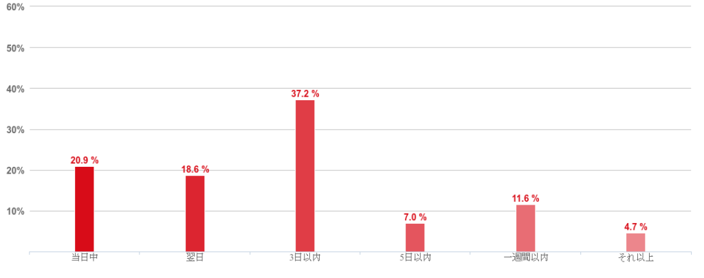 アンケートによれば、「スターカードローンα」のユーザーは申し込みから概ね3日以内にお金を受け取ることができていた。