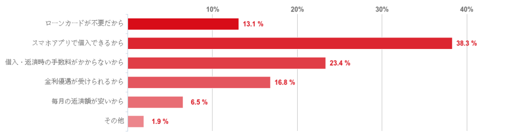 アンケートによると、回答者の約4割が「スマホアプリで借入できる」ことを理由に住信SBIネット銀行カードローンを借入先として選んでいることがわかった。