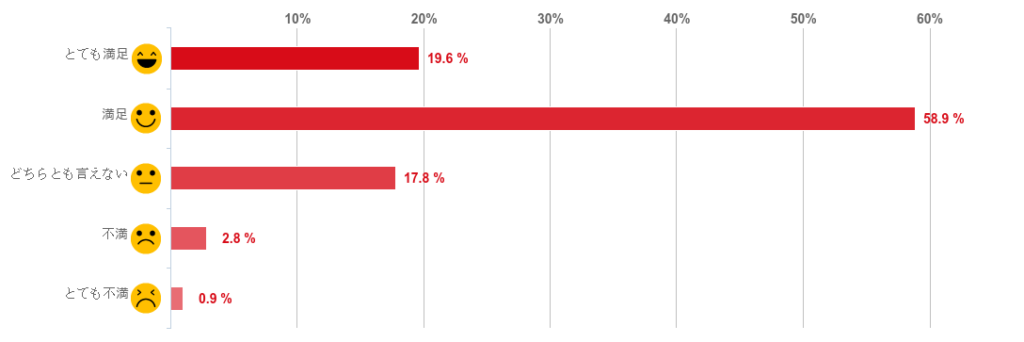 最後に住信SBIネット銀行カードローンの総合評価をしてもらったところ、「とても満足」「満足」との評価が約8割「どちらとも言えない」が約2割という結果になった。