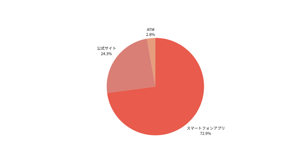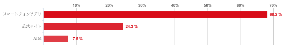 また、ATMと回答した人の割合は約3%に留まり、利便性の観点からアプリや公式サイトでの申し込みが主流となっていることが明らかとなった。