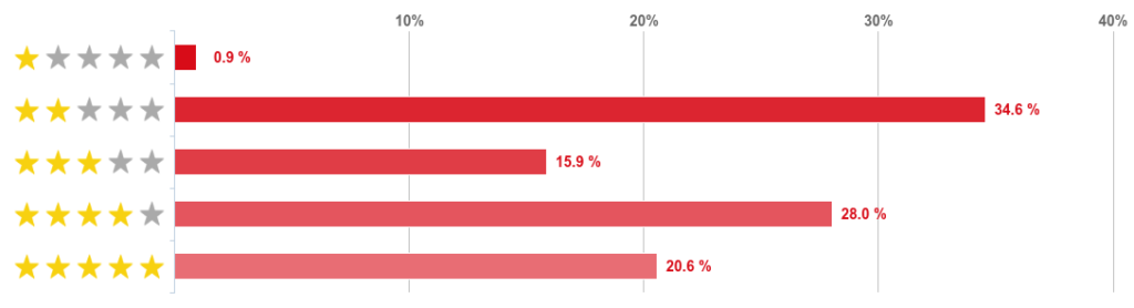 アンケートによれば、住信SBIネット銀行カードローンの金利について2点と評価した人が最も多く、全体の約3割という結果となった。