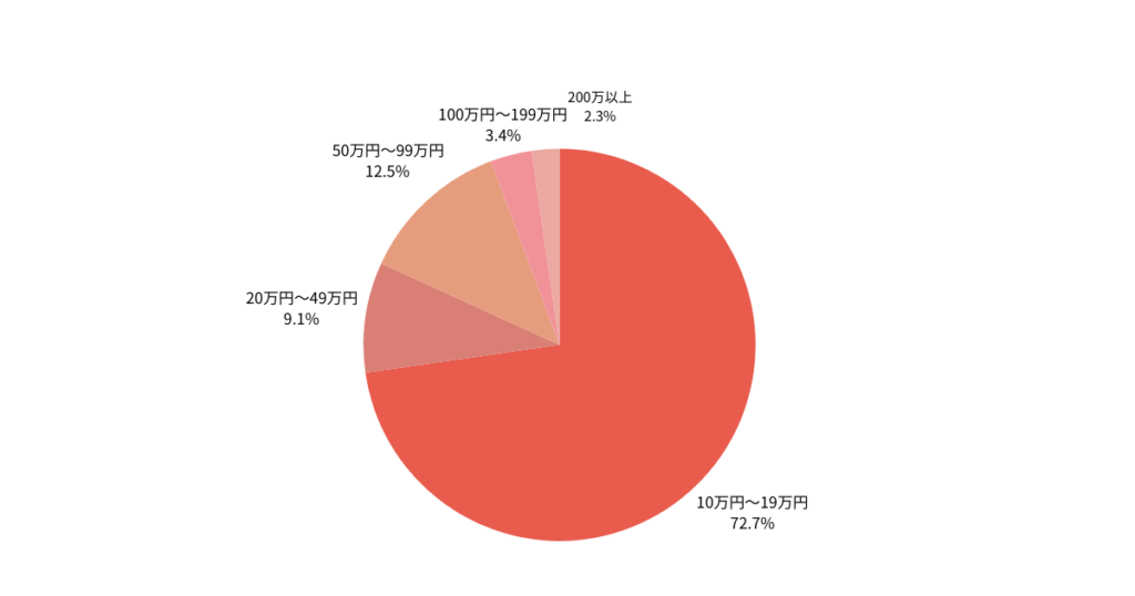 アンケートによると、最も多い借入額帯は10万円~19万円で全体の約7割以上を占める結果となった。