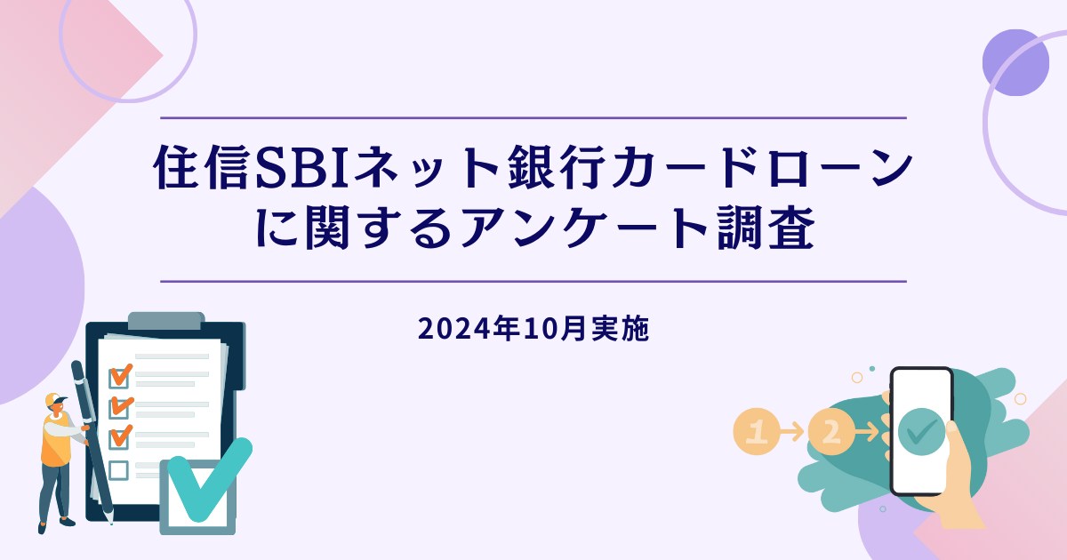 株式会社中小企業のチカラ(本社:東京都渋谷区、代表取締役社長:山下 佳介)は、金融の様々なカテゴリーにおける情報を発信するサイトを運営しています。本記事では、2024年10月に行った住信SBIネット銀行カードローンに関する調査結果をご紹介いたします。